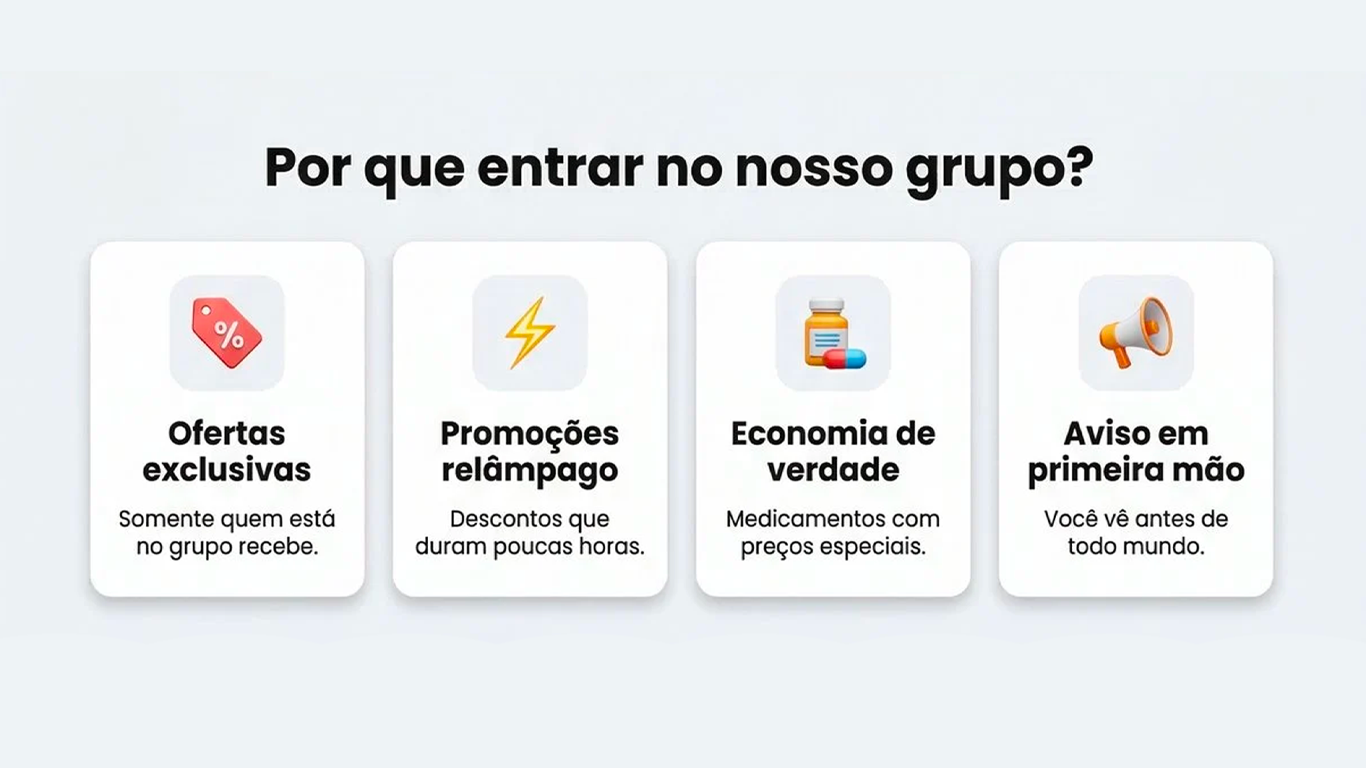 Receba promoções exclusivas, ofertas relâmpago e novidades da farmácia mais barata da cidade, direto no seu celular. Click no link e entre agora! 👇